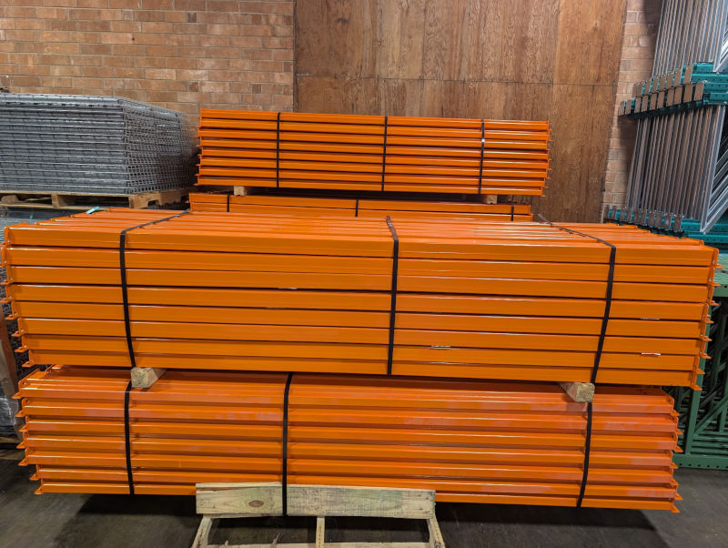 We primarily stock high-demand, industry-standard rack components, including the highly popular Teardrop Pallet Racking style. Our used inventory frequently includes essential items like various height Teardrop Uprights, load-bearing Face Beams (in common lengths like 96″ and 108″), and necessary accessories such as wire decking and row spacers. Contact us directly to check the current availability of specific sizes and rack types.