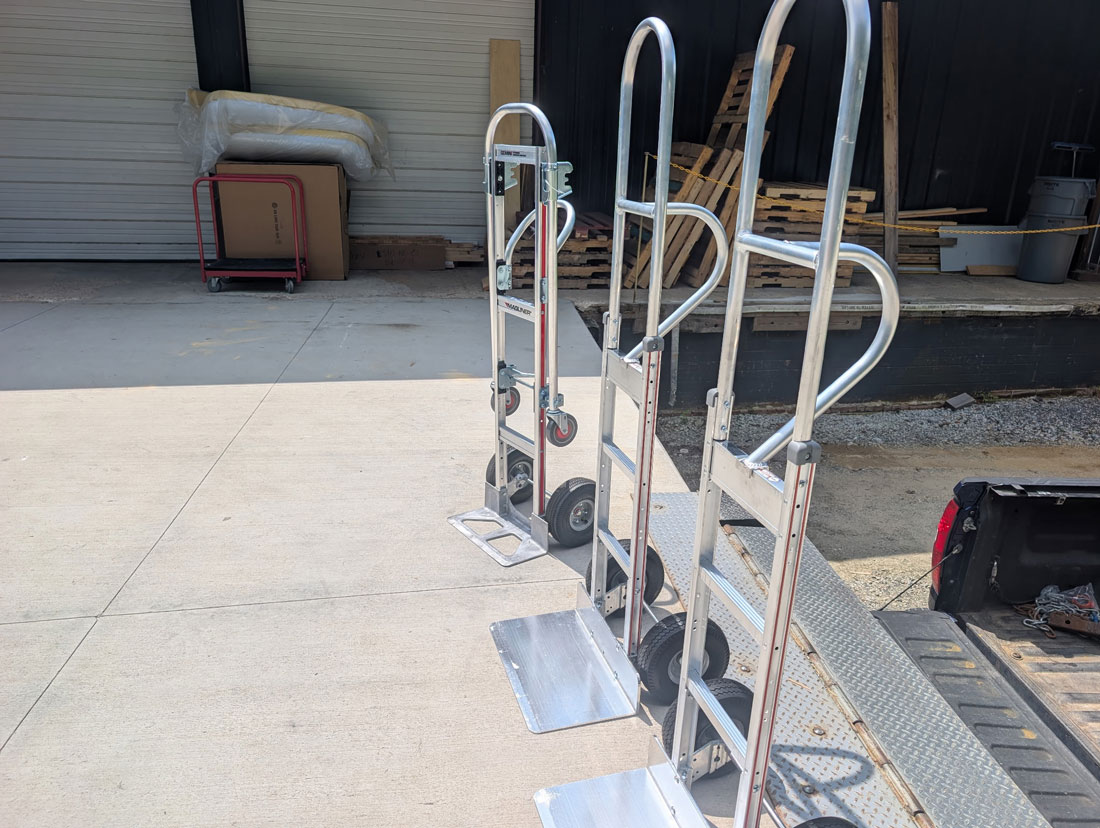 Hand trucks in stock at Carolina Material Handling, Inc.—built for delivery routes, warehouses, and tight turns.