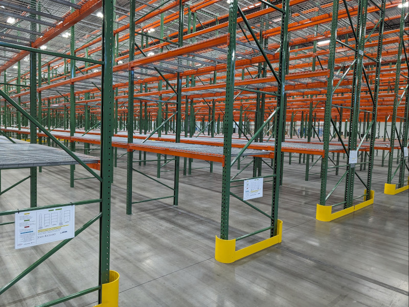 Shout-out to our suppliers: Nashville Wire for the wire decks, Husky Rack & Wire for the pallet rack, Handle It for the guardrail, and World Wide for the pallet rack protectors.